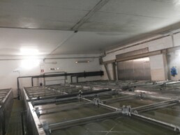Nel piano di interventi 2014, la Auricchio Spa, continua la partnership con Gelox International srl. Nello stabilimento di Pieve S. Giacomo abbiamo svolto un’importante lavoro di ristrutturazione dei soffitti della sala SALINE. L’intervento ha interessato lo smontaggio dell’attuale controsoffitto sostiuito con 1.500 mq. di pannello in vetroresina. La presenza delle vasche di salatura ha richiesto la realizzazione di un soppalco sul quale lavorare per raggiungere le altezze necessarie.